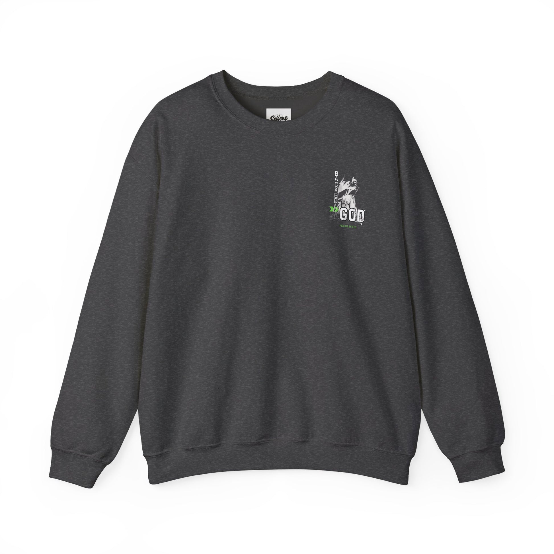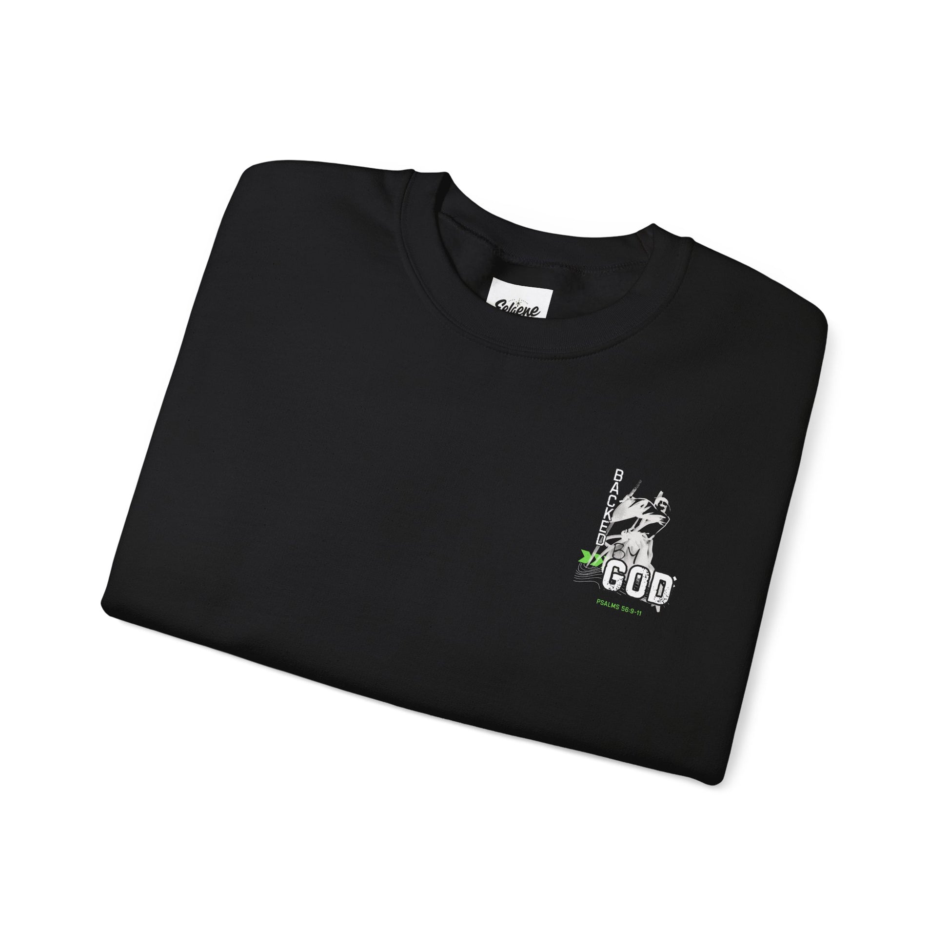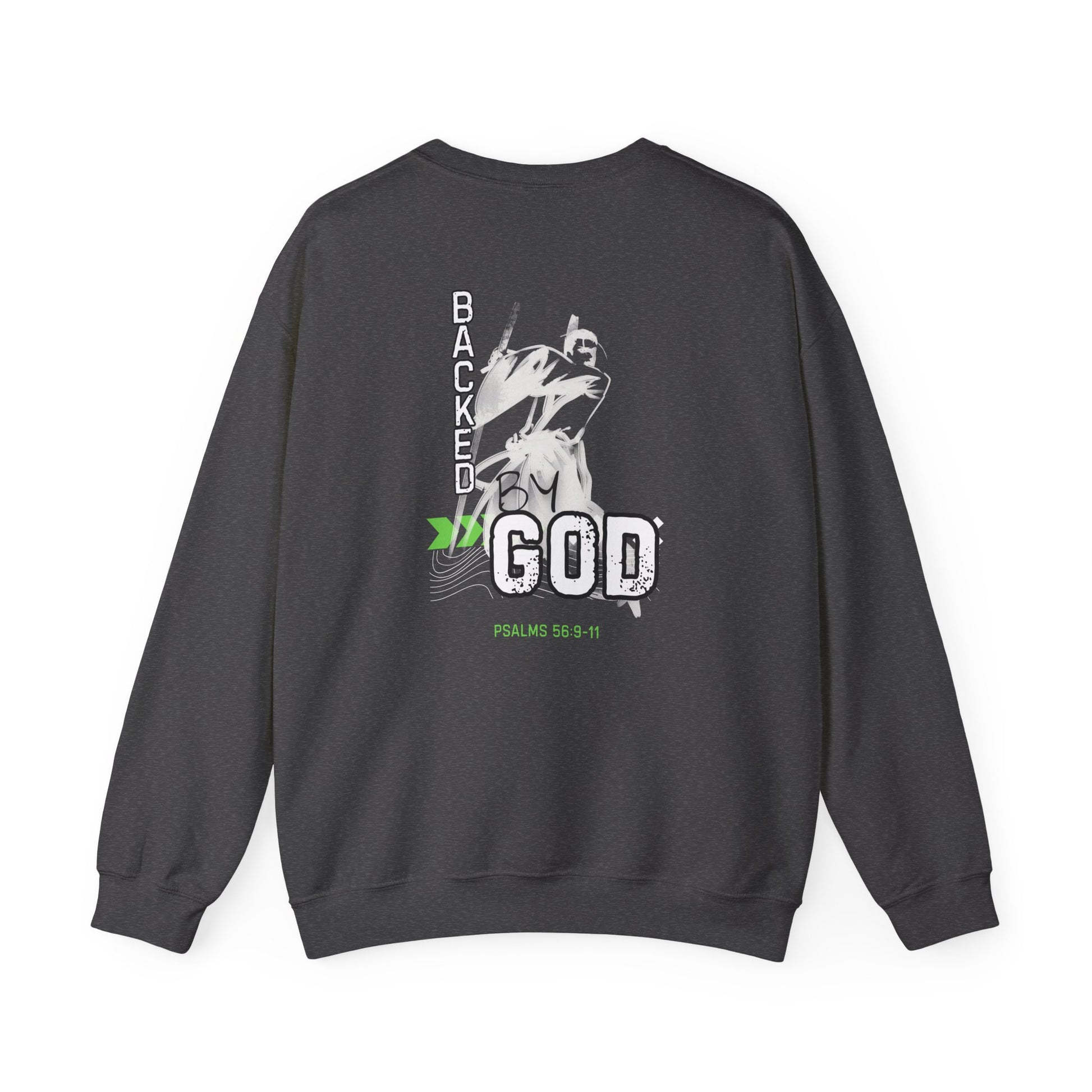 Backed By God Crewneck Sweatshirt — Psalm 56:9-11 Inspirational Faith Top