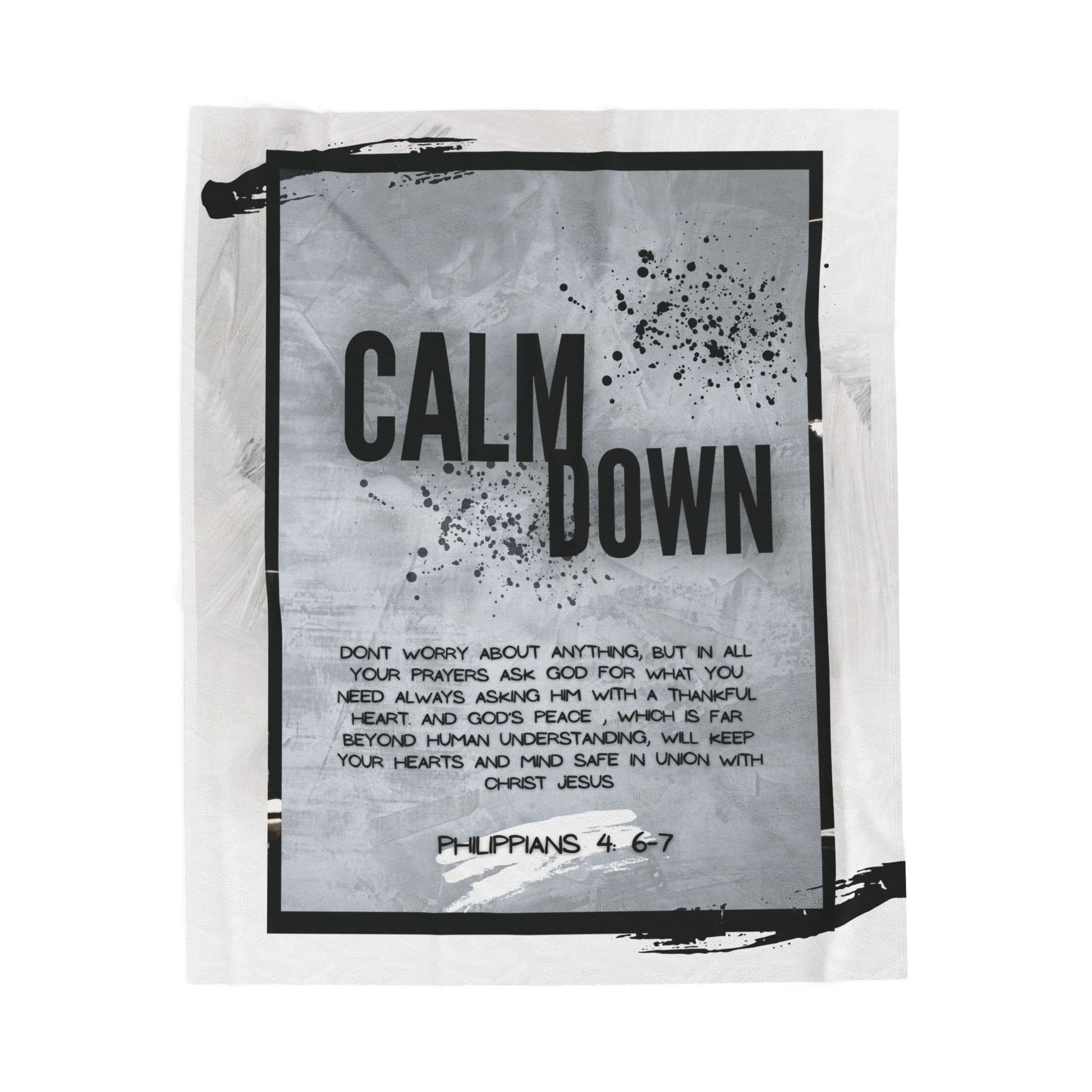 A velveteen plush blanket featuring a design inspired by Phillippians 4: 6-7, reminding the user to find peace in Christ during tough times. This cozy blanket is perfect for anyone seeking comfort and reassurance in their faith, making it a thoughtful gift for religious holidays and occasions.