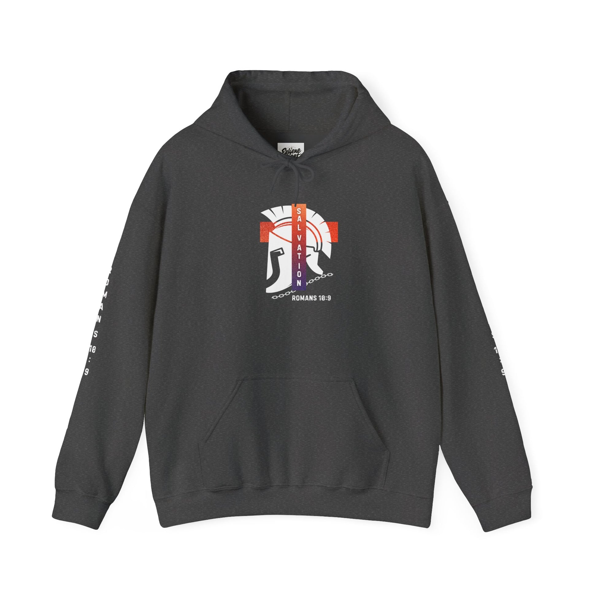 Christian Faith Hoodie with Roman 10:9 and Ephesians 6:17 Design