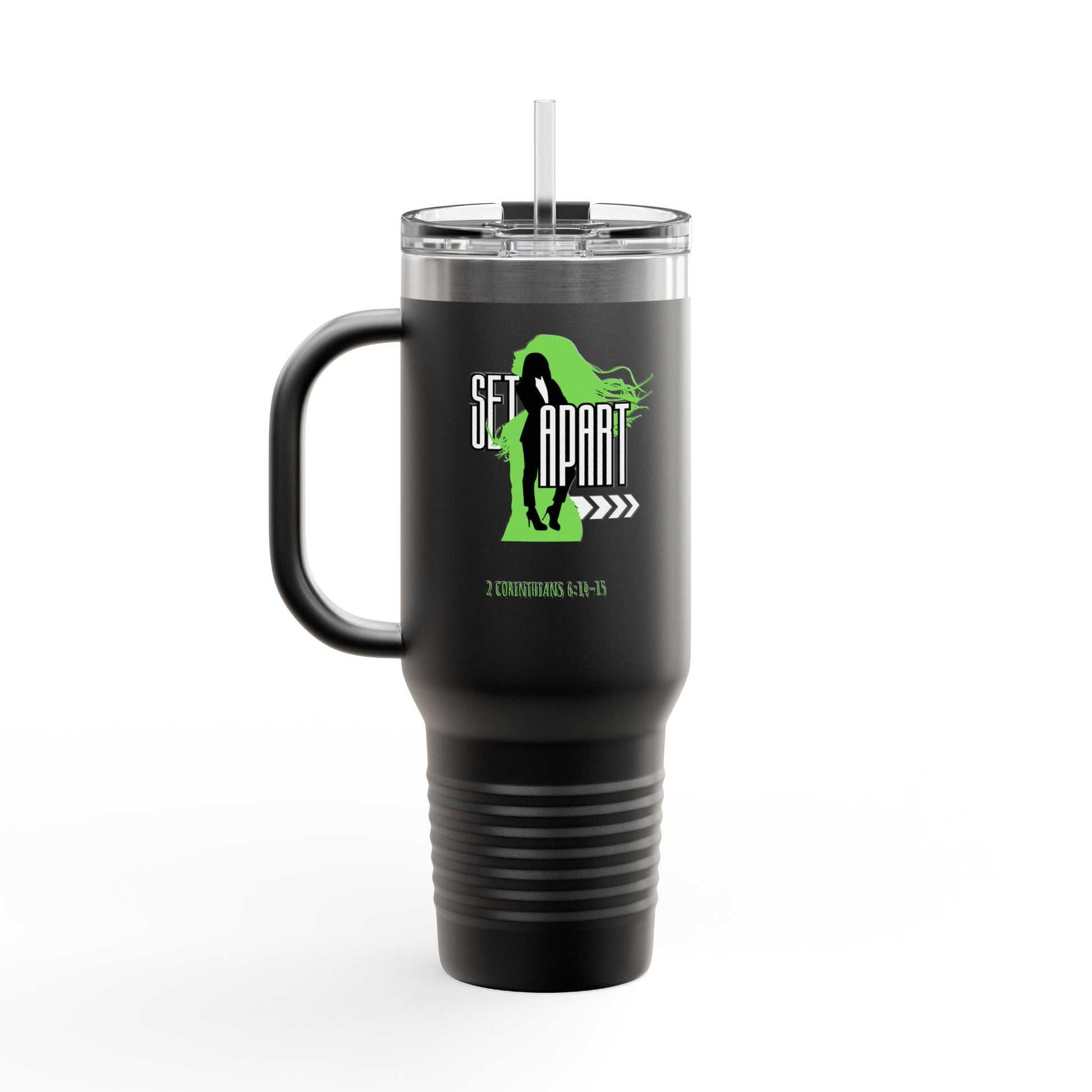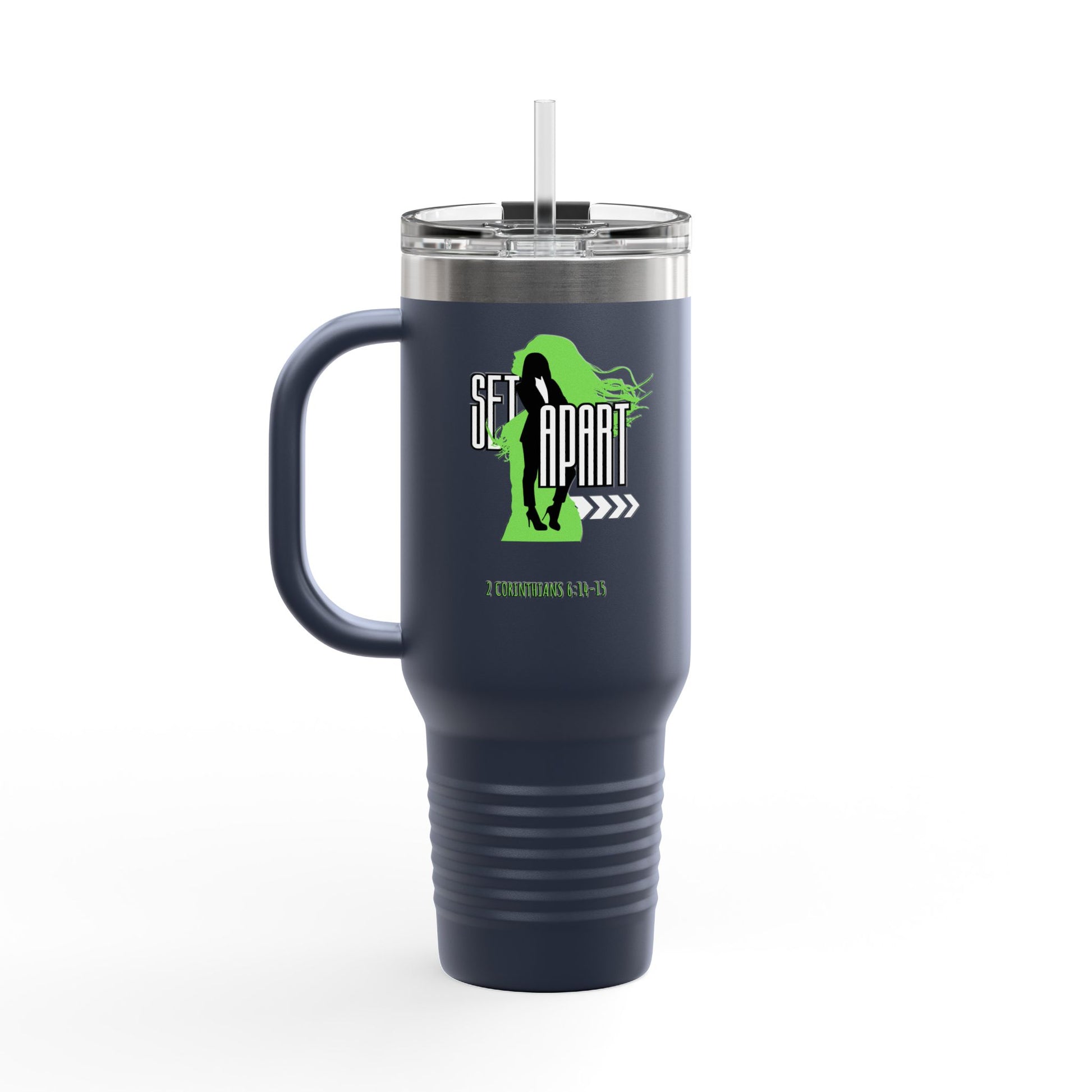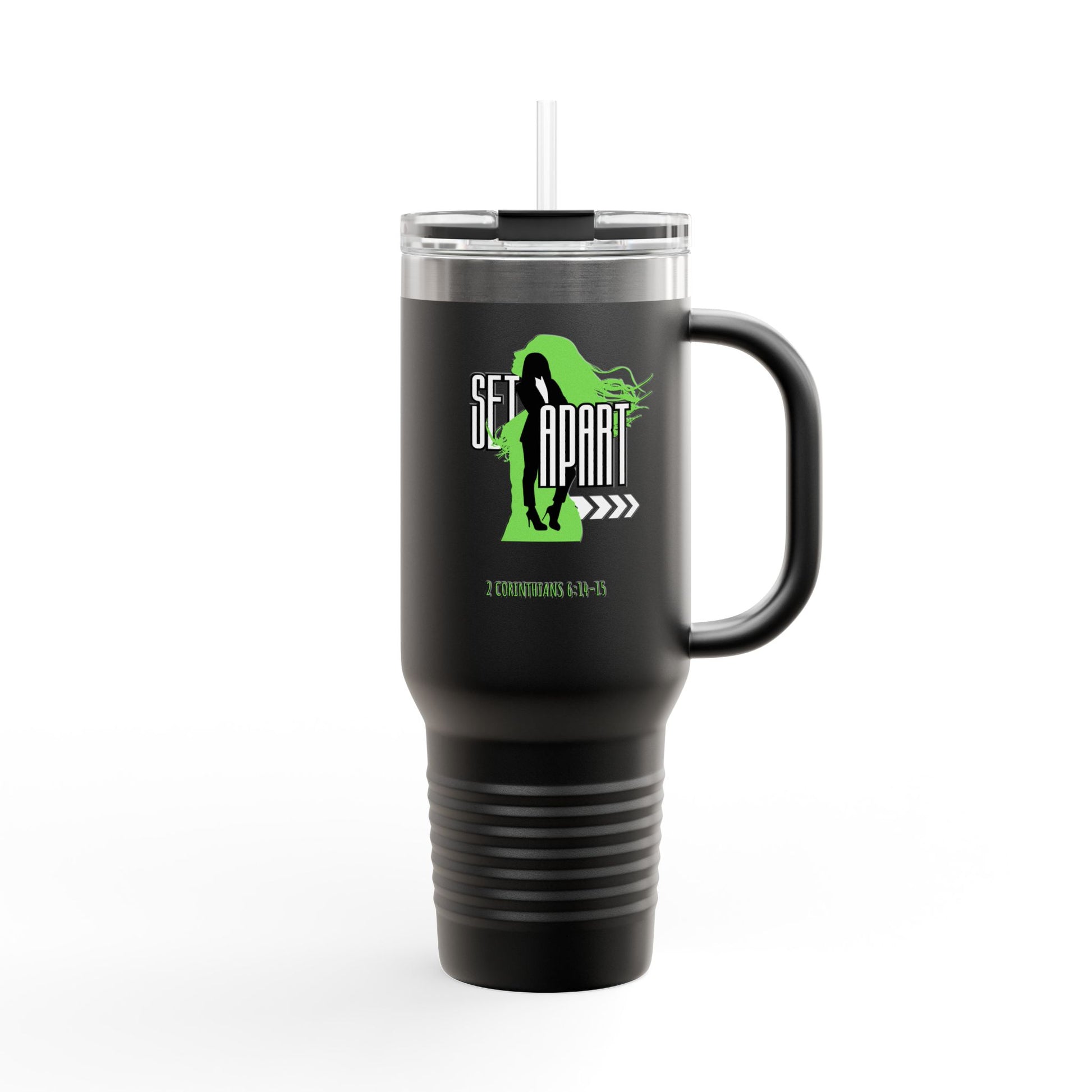 This stainless steel travel mug with a double-wall insulation design keeps drinks hot or cold for hours, making it perfect for long trips and outdoor activities. Inspired by 2 Corinthians 6: 14-15, this design is ideal for women who value being set apart. The 40oz capacity and leak-proof lid make it convenient and suitable for everyday use or as a thoughtful gift for Christian holidays or occasions.
