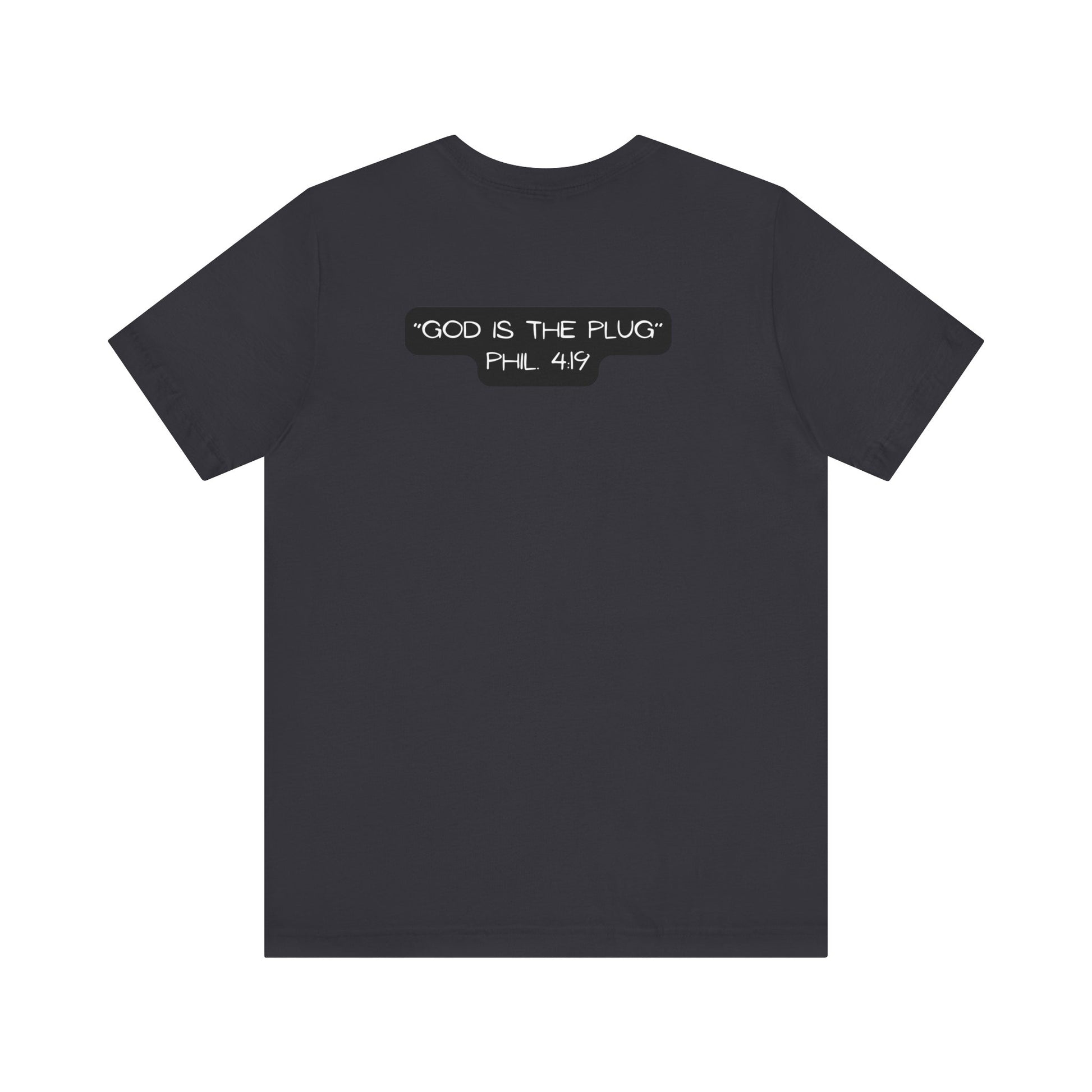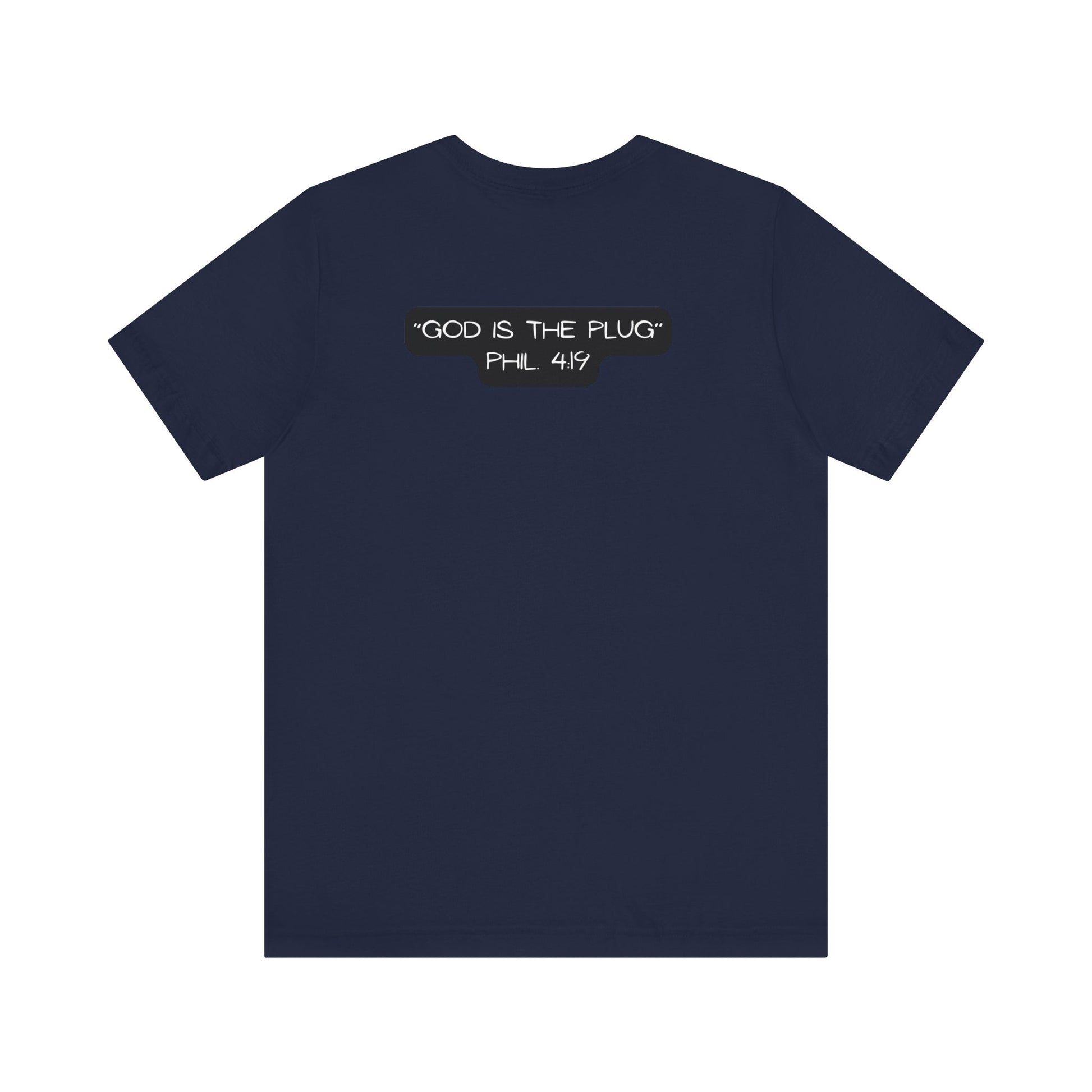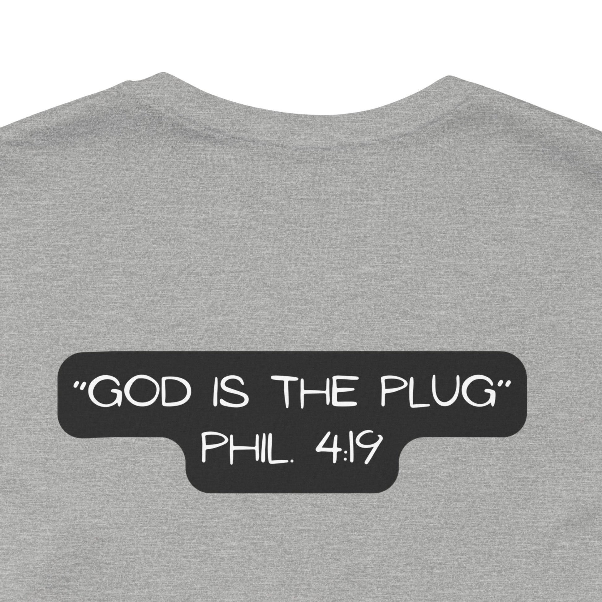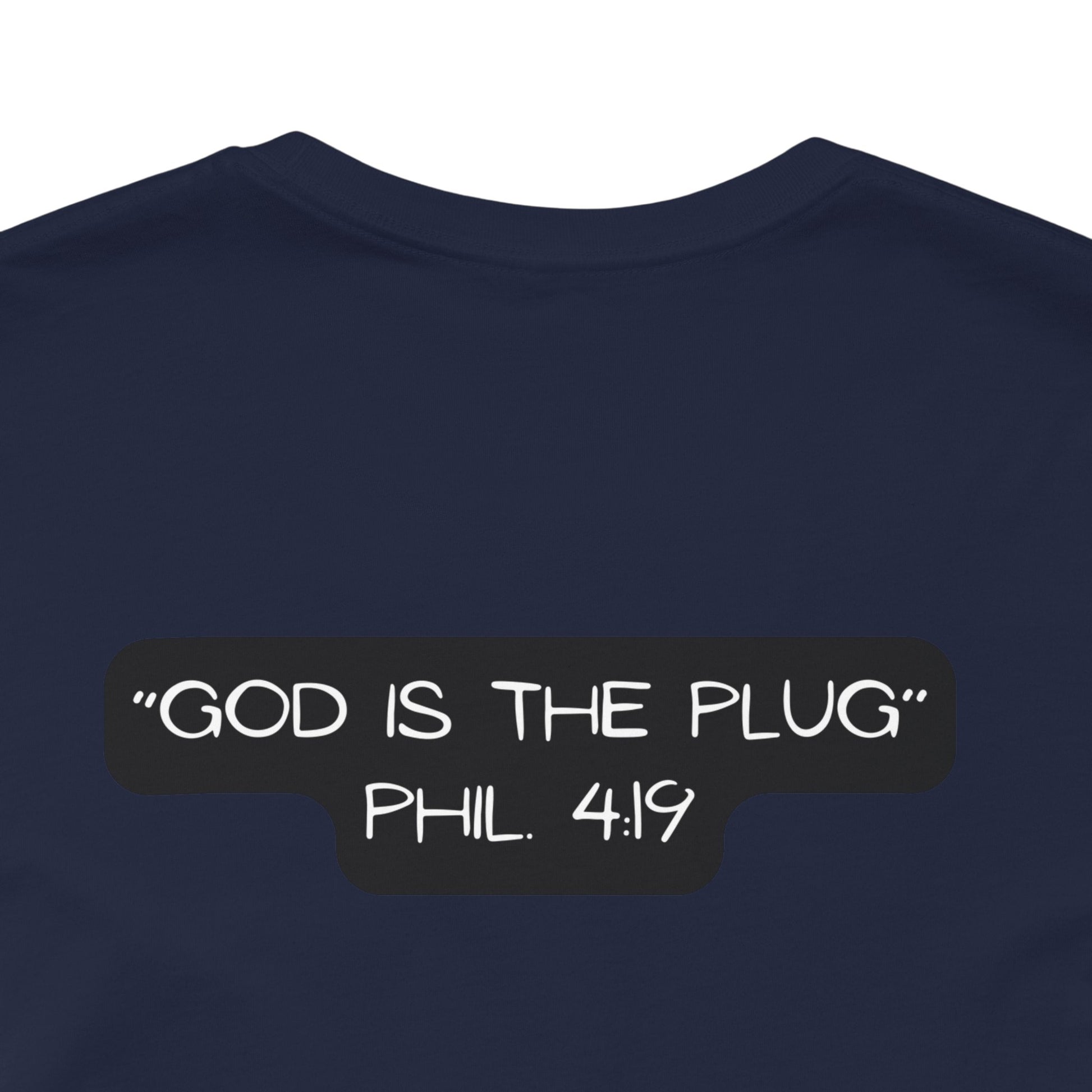This T-Shirt features a design inspired by Philippians 4:19, reminding us that God supplies all our needs. It's a fun way to refer to Him as the plug. The tee gives off a positive and uplifting vibe, perfect for daily wear or casual outings. It's relevant to Christians or anyone seeking spiritual encouragement. Ideal for religious holidays, church events, or everyday wear.
