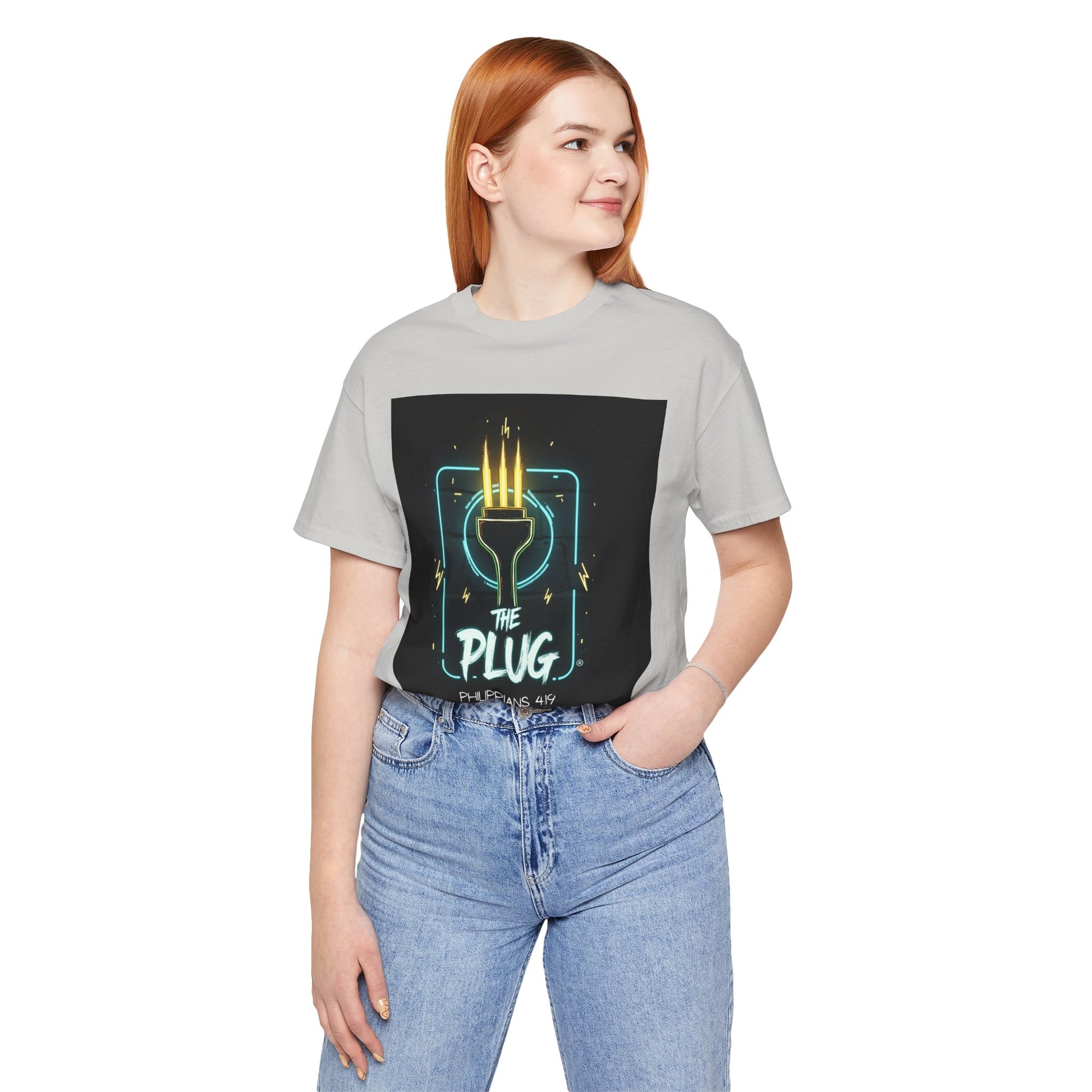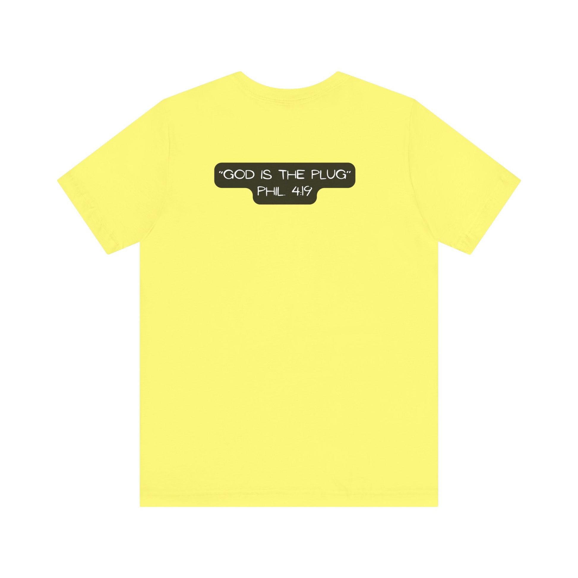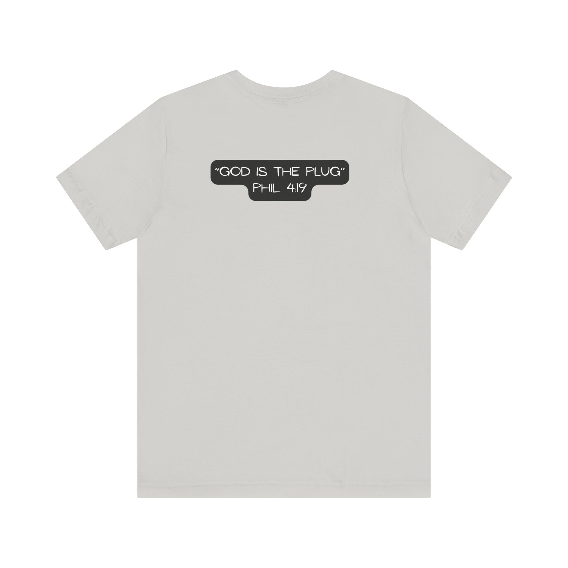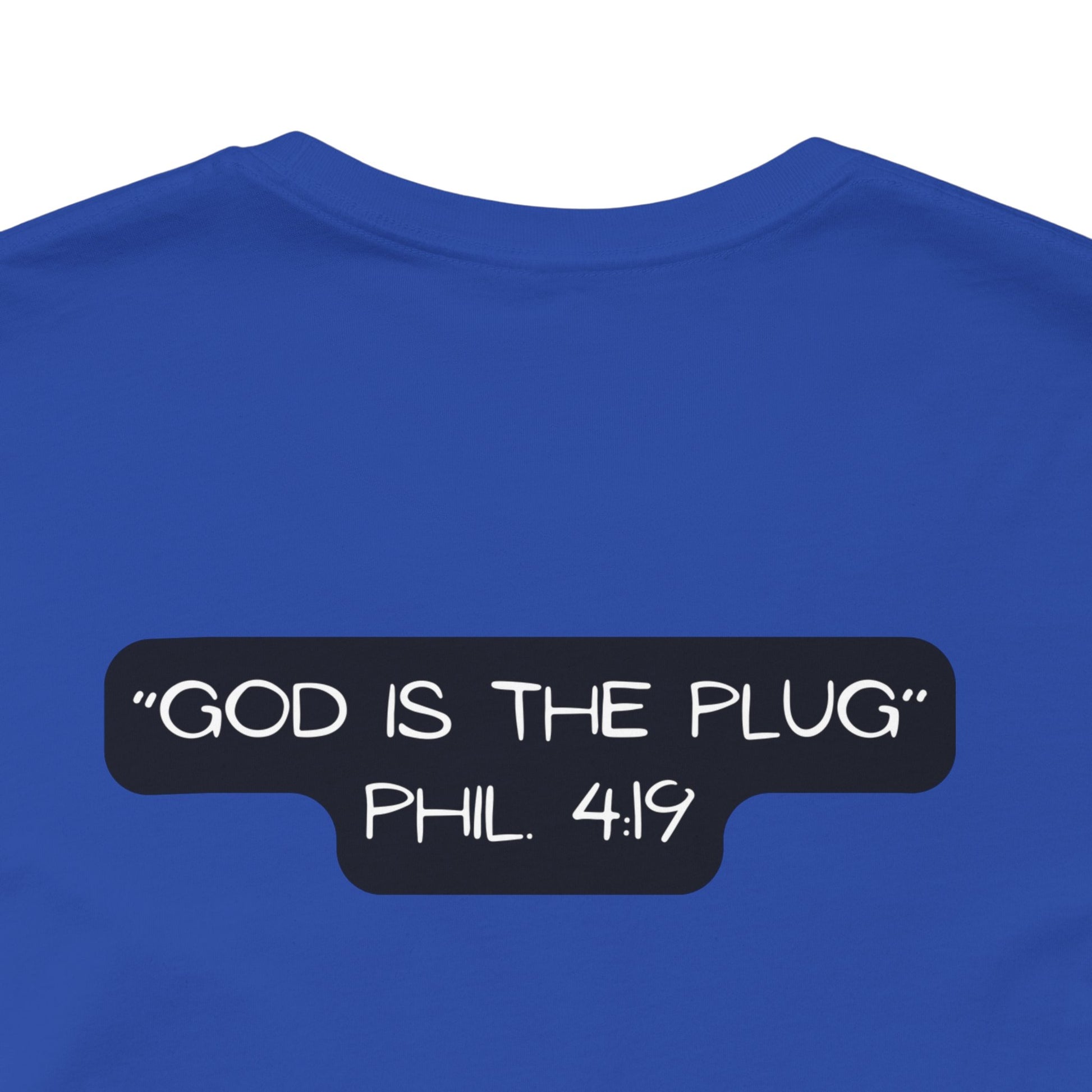 This T-Shirt features a design inspired by Philippians 4:19, reminding us that God supplies all our needs. It's a fun way to refer to Him as the plug. The tee gives off a positive and uplifting vibe, perfect for daily wear or casual outings. It's relevant to Christians or anyone seeking spiritual encouragement. Ideal for religious holidays, church events, or everyday wear.