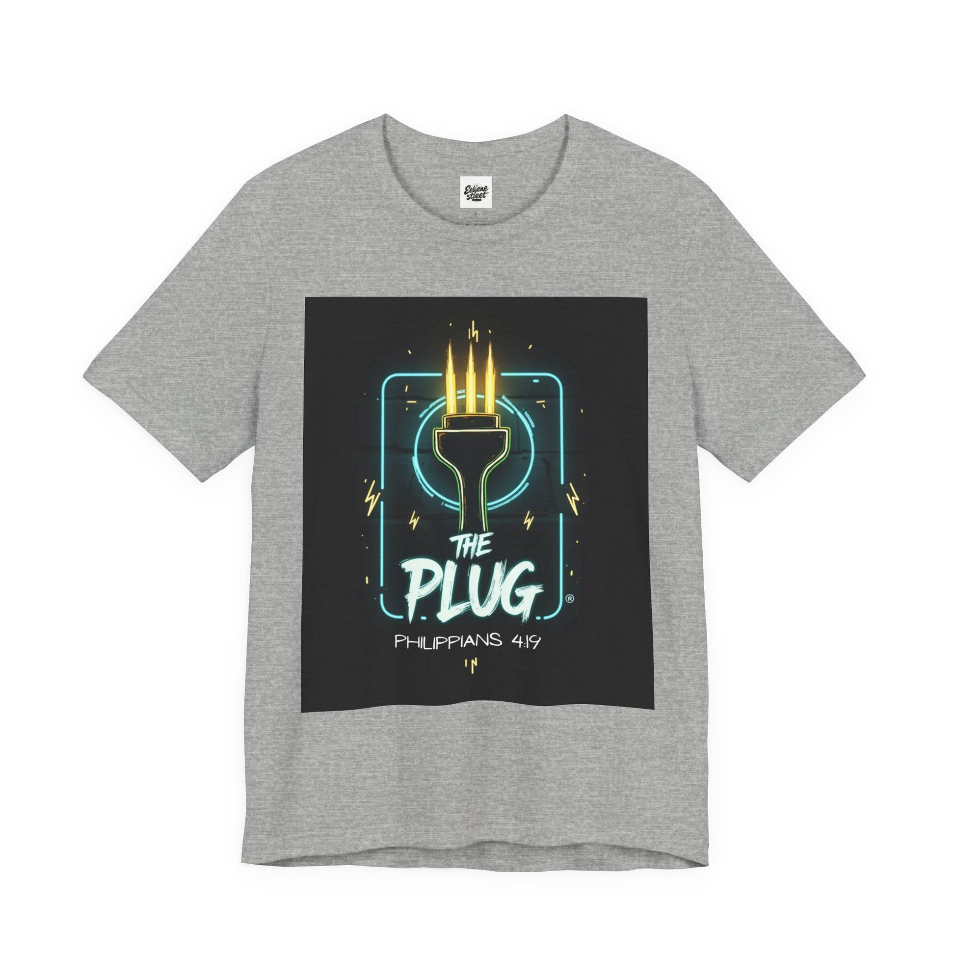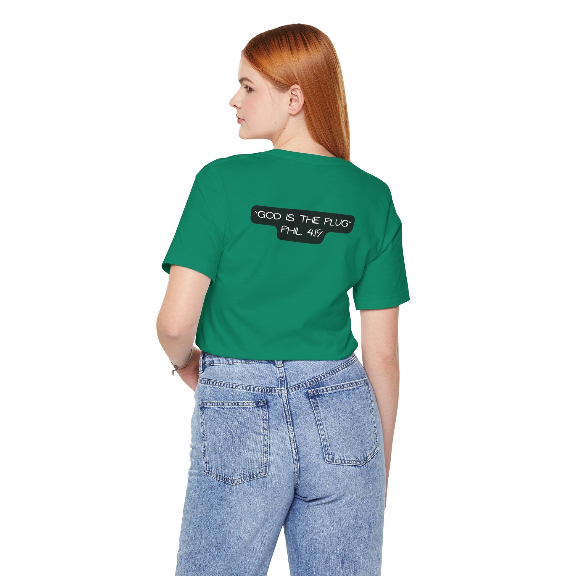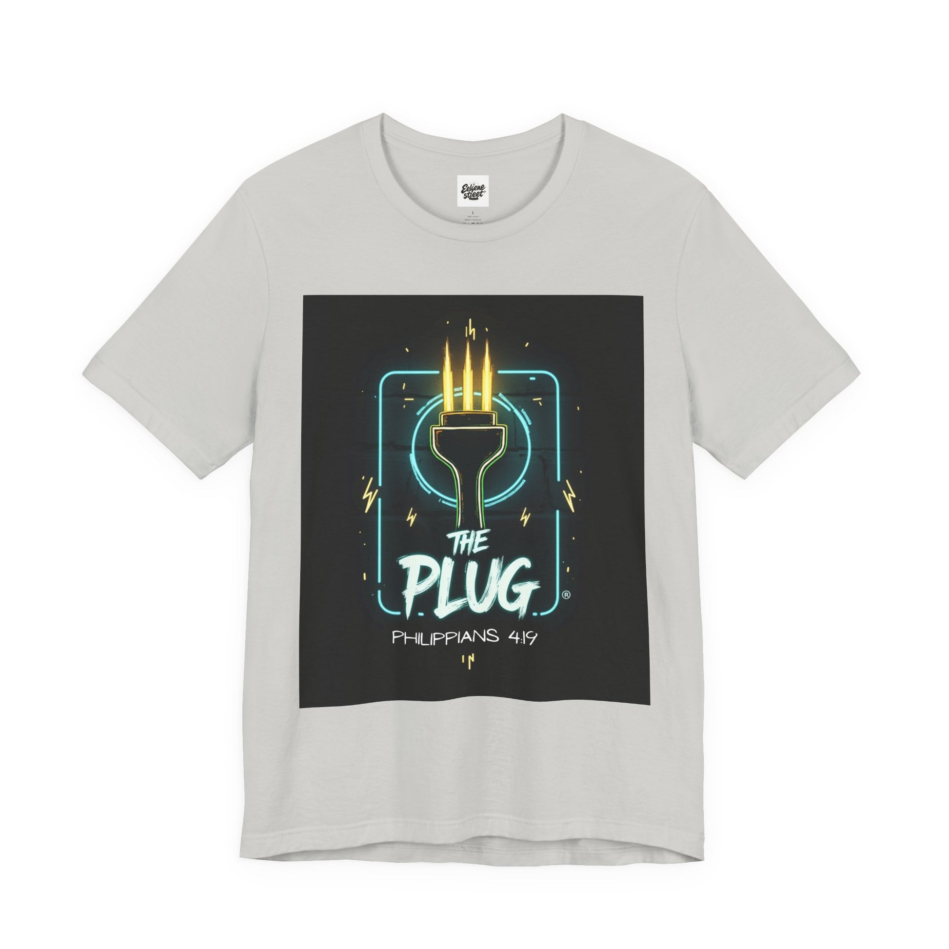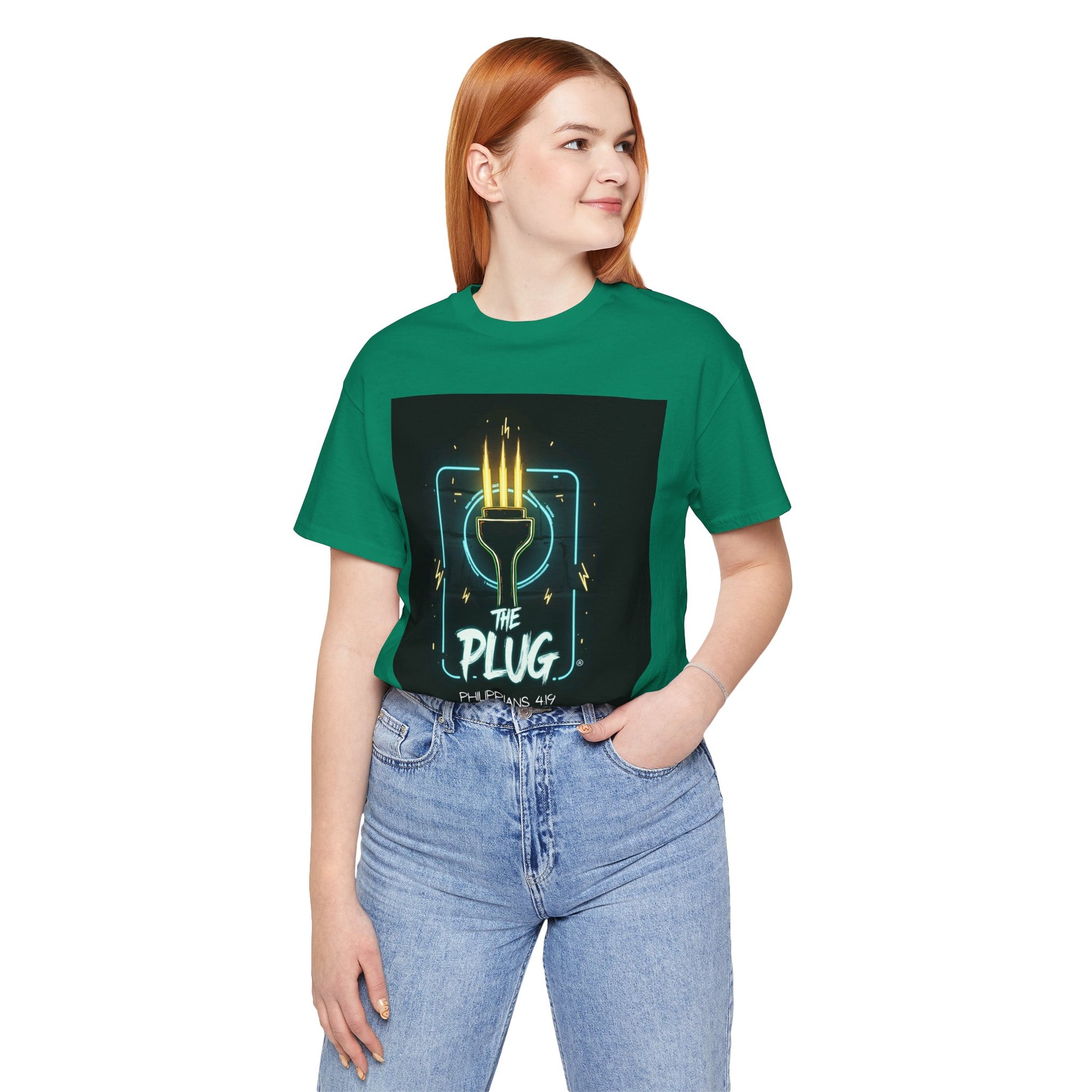 This T-Shirt features a design inspired by Philippians 4:19, reminding us that God supplies all our needs. It's a fun way to refer to Him as the plug. The tee gives off a positive and uplifting vibe, perfect for daily wear or casual outings. It's relevant to Christians or anyone seeking spiritual encouragement. Ideal for religious holidays, church events, or everyday wear.