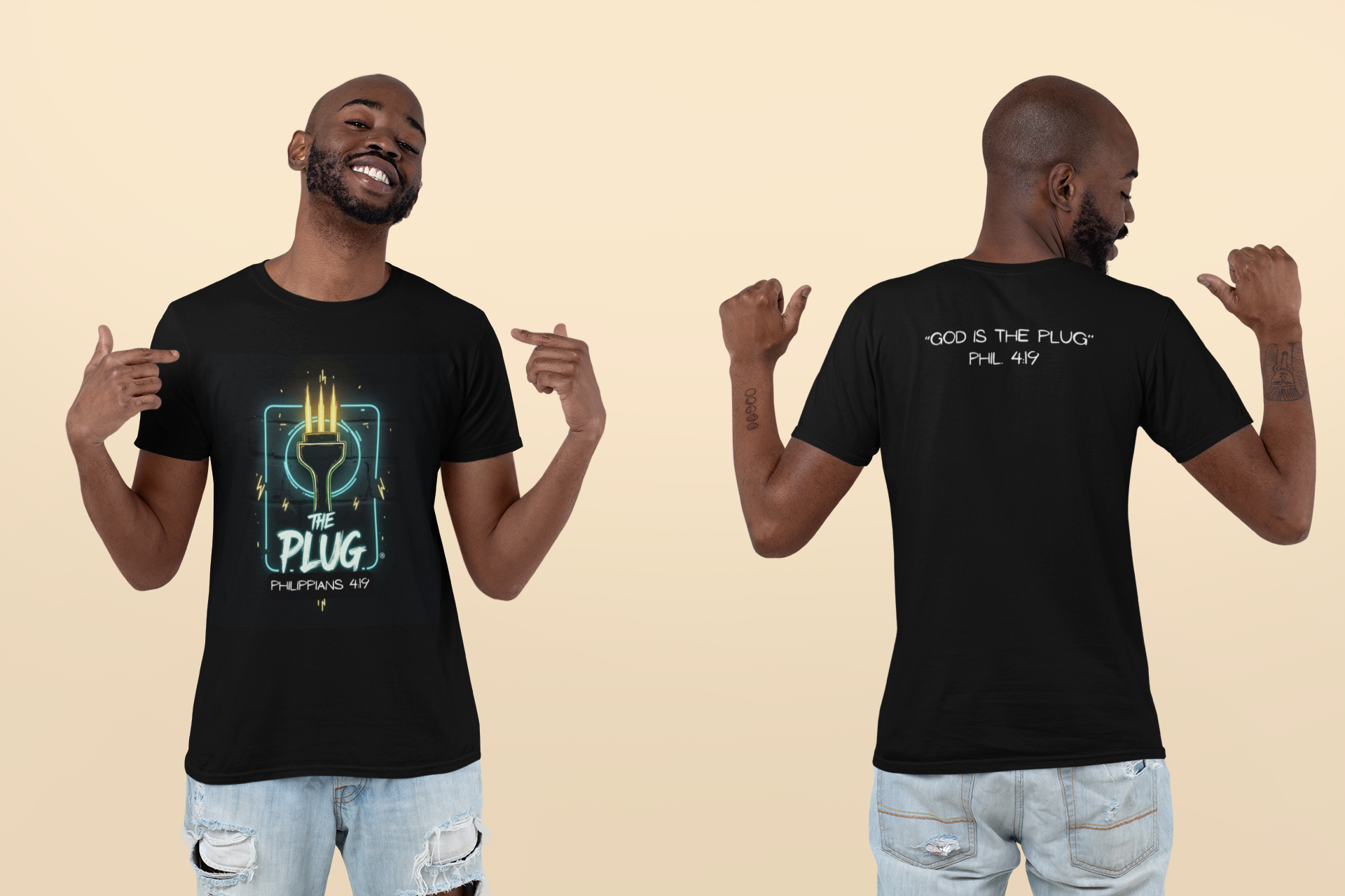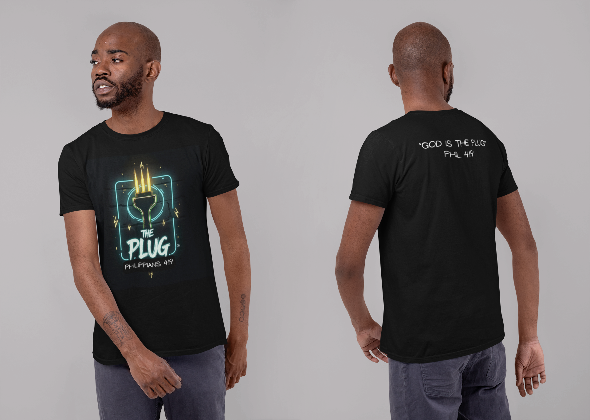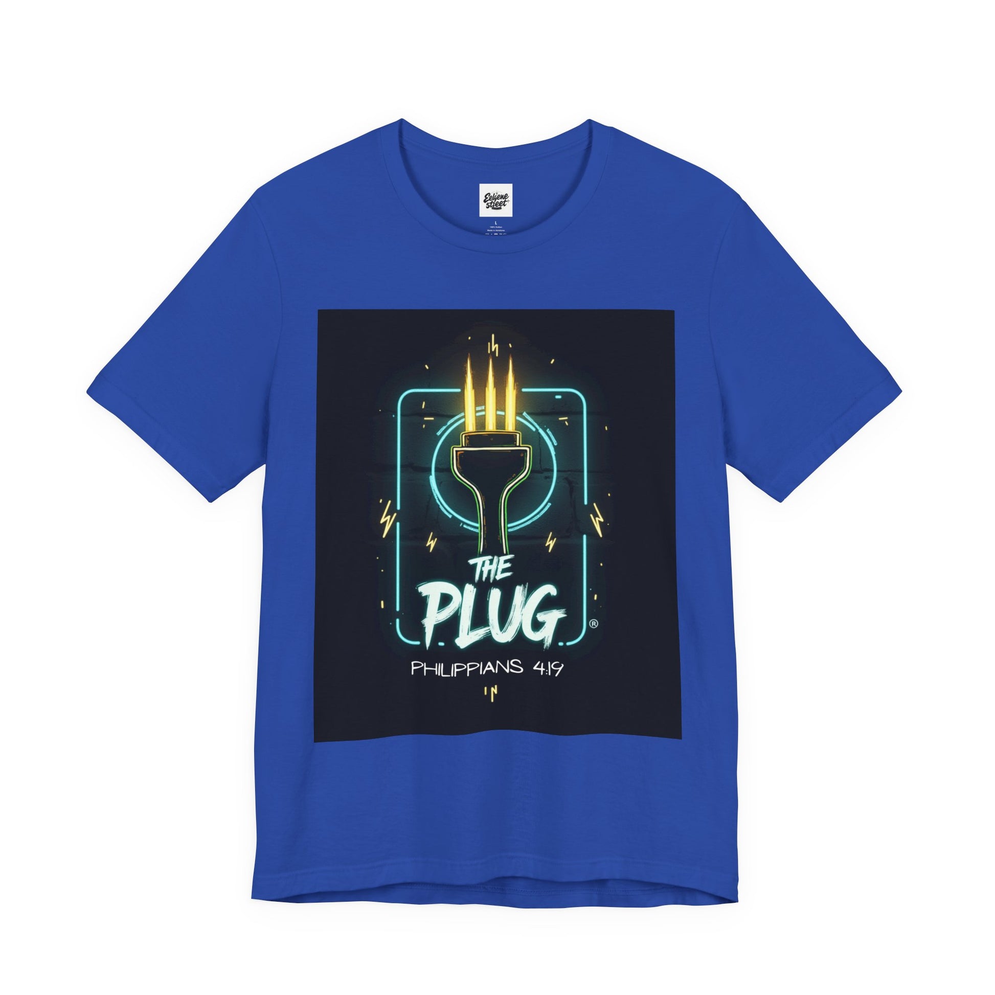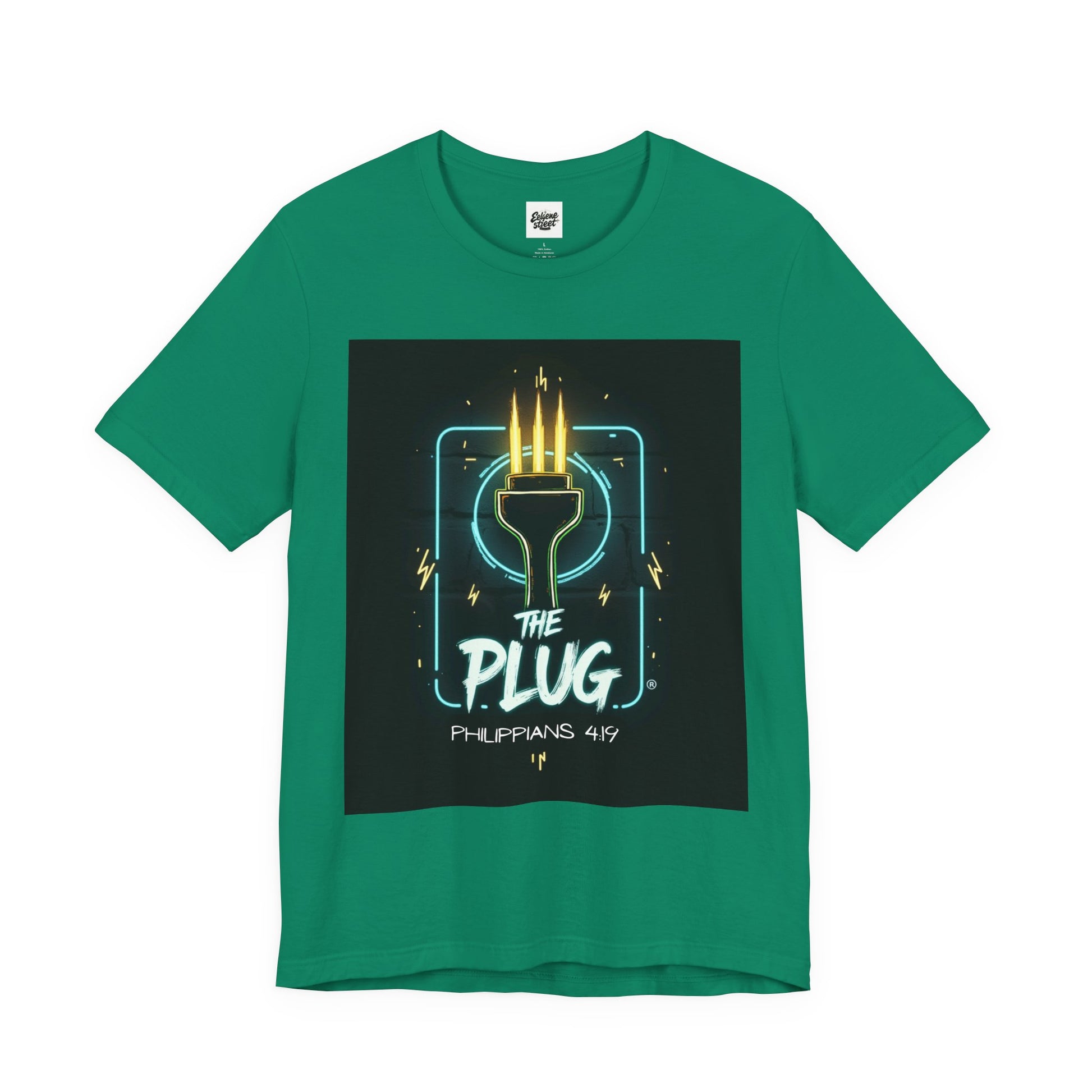 This T-Shirt features a design inspired by Philippians 4:19, reminding us that God supplies all our needs. It's a fun way to refer to Him as the plug. The tee gives off a positive and uplifting vibe, perfect for daily wear or casual outings. It's relevant to Christians or anyone seeking spiritual encouragement. Ideal for religious holidays, church events, or everyday wear.