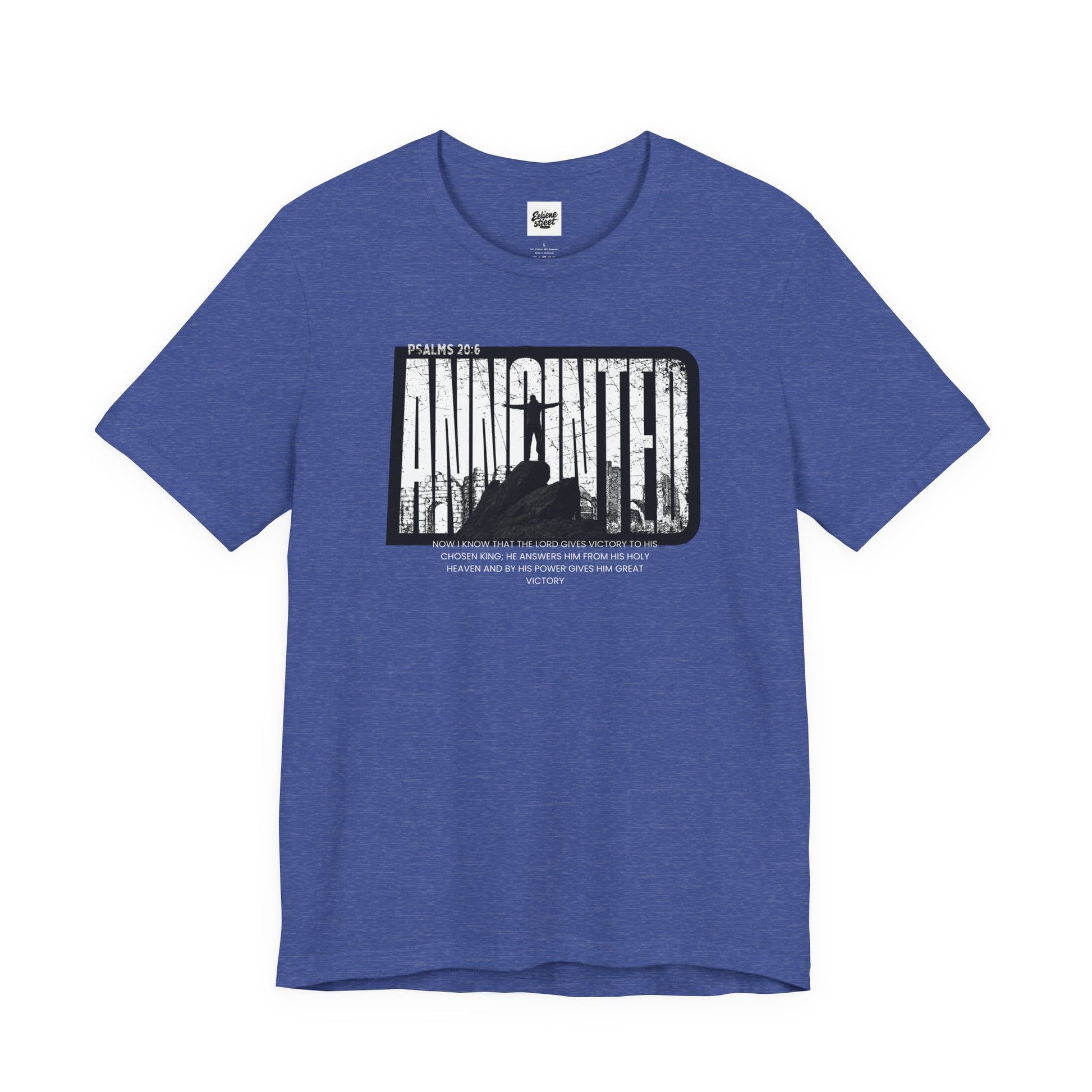 This T-Shirt design is inspired by the affirmation that the Lord will always grant victory to his chosen ones as stated in the book of Psalms 20:6. It is best suited for men or women looking to gift their husbands, fiancées, or boyfriends to encourage the affirmation. The T-Shirt gives a feeling of encouragement and faith, making it a perfect gift for religious holidays, birthdays, or anniversaries.
