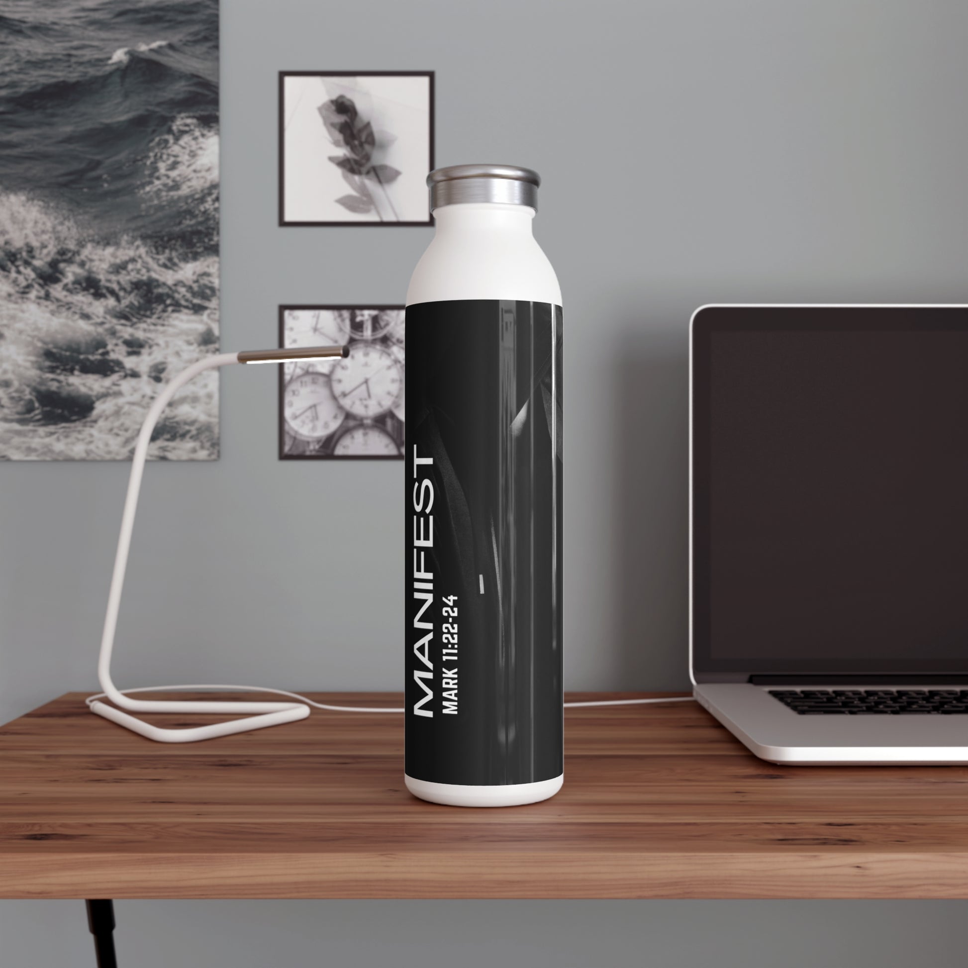 This water bottle features a design inspired by Mark 11:22-24, encouraging faith and belief. The double-walled stainless steel construction keeps drinks hot or cold for hours. Perfect for those seeking inspiration and looking for a durable, stylish way to stay hydrated. Ideal for religious individuals, believers, and gift-givers for religious holidays and occasions.
