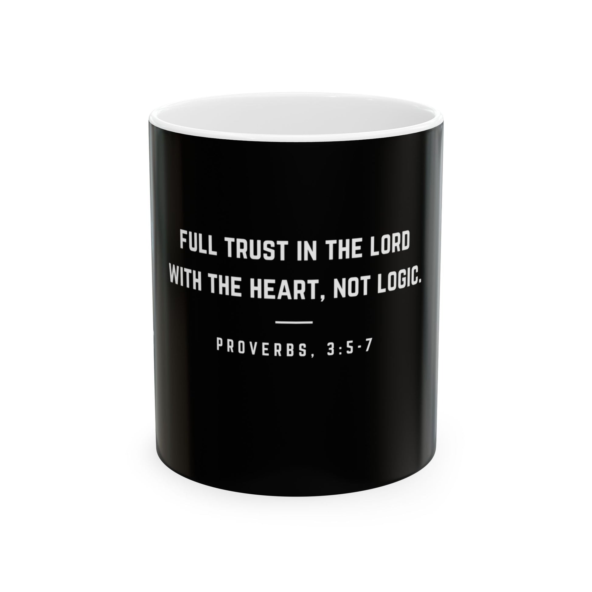 This ceramic mug is inspired by the book of Proverbs 3:5-7, serving as a reminder to always trust in God. With vibrant colors and a glossy finish, this mug is perfect for daily use or as a thoughtful gift for someone who values faith and spirituality. Ideal for religious holidays, church events, and personal devotions.