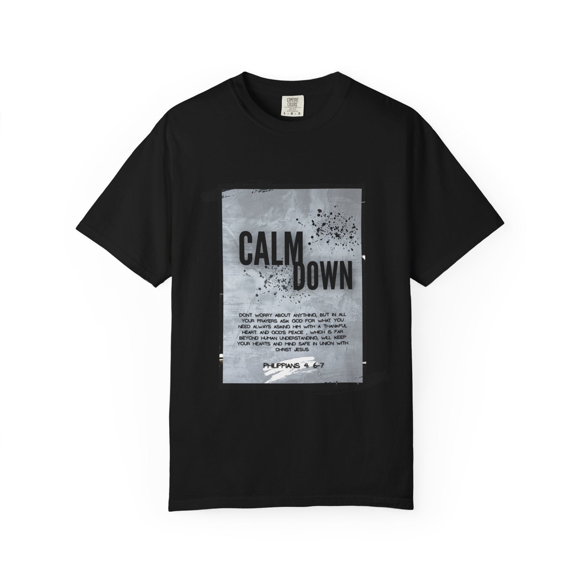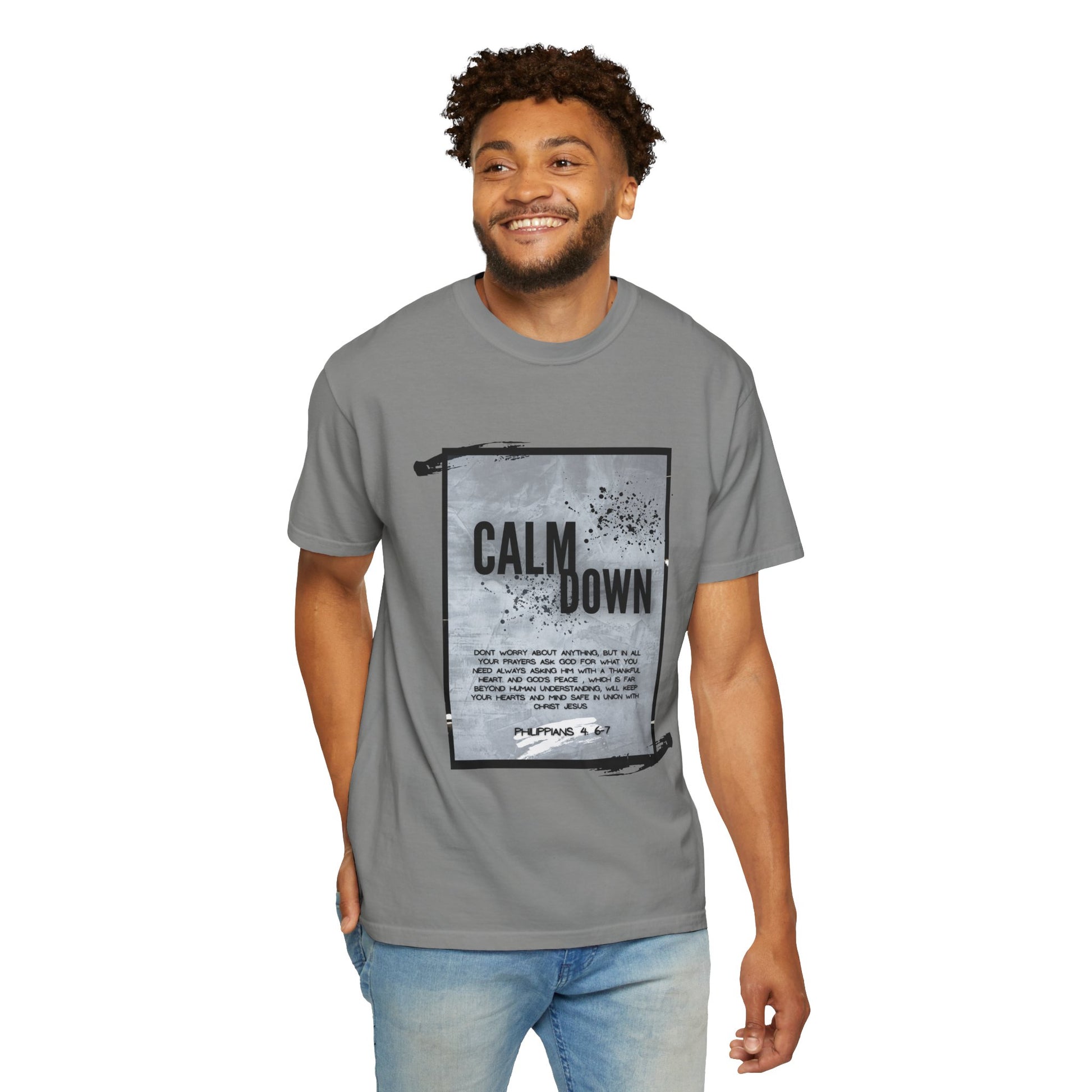 This T-shirt serves as a reminder to always be at peace with the scripture from Philippians 4: 6-9 printed on it. It offers a relaxed fit and is made of 100% ring-spun US cotton, providing long-lasting comfort. Perfect for those seeking inner peace and comforting reminders throughout their day. Ideal for religious and spiritual individuals, this T-shirt is relevant for Christian holidays and occasions.