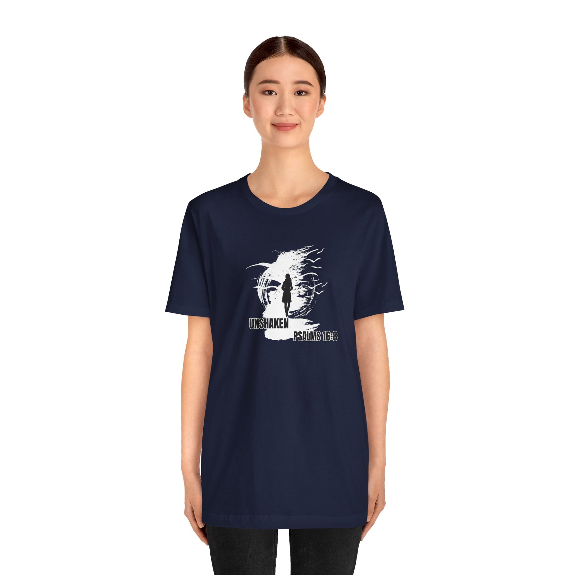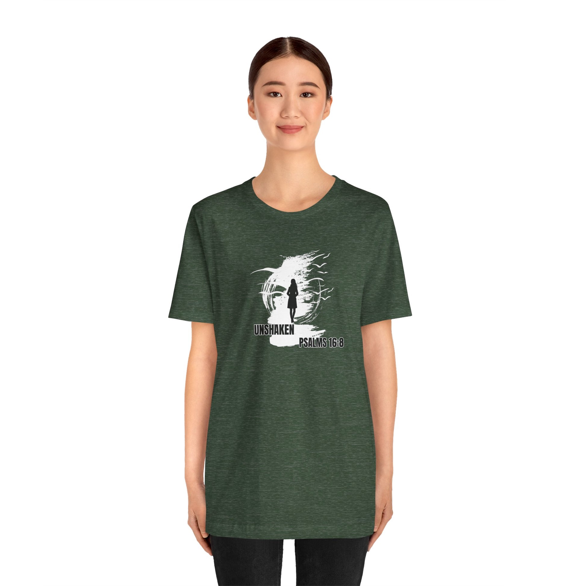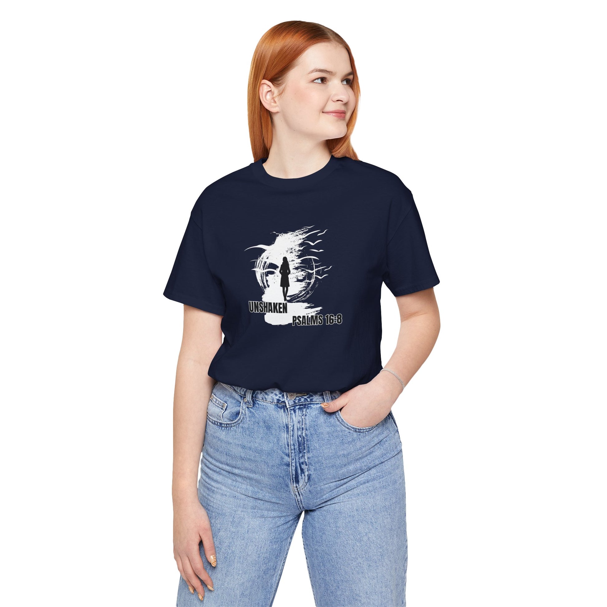 Unisex Tee - Unshaken in God's Presence Inspired by Psalms 16:8 - Women