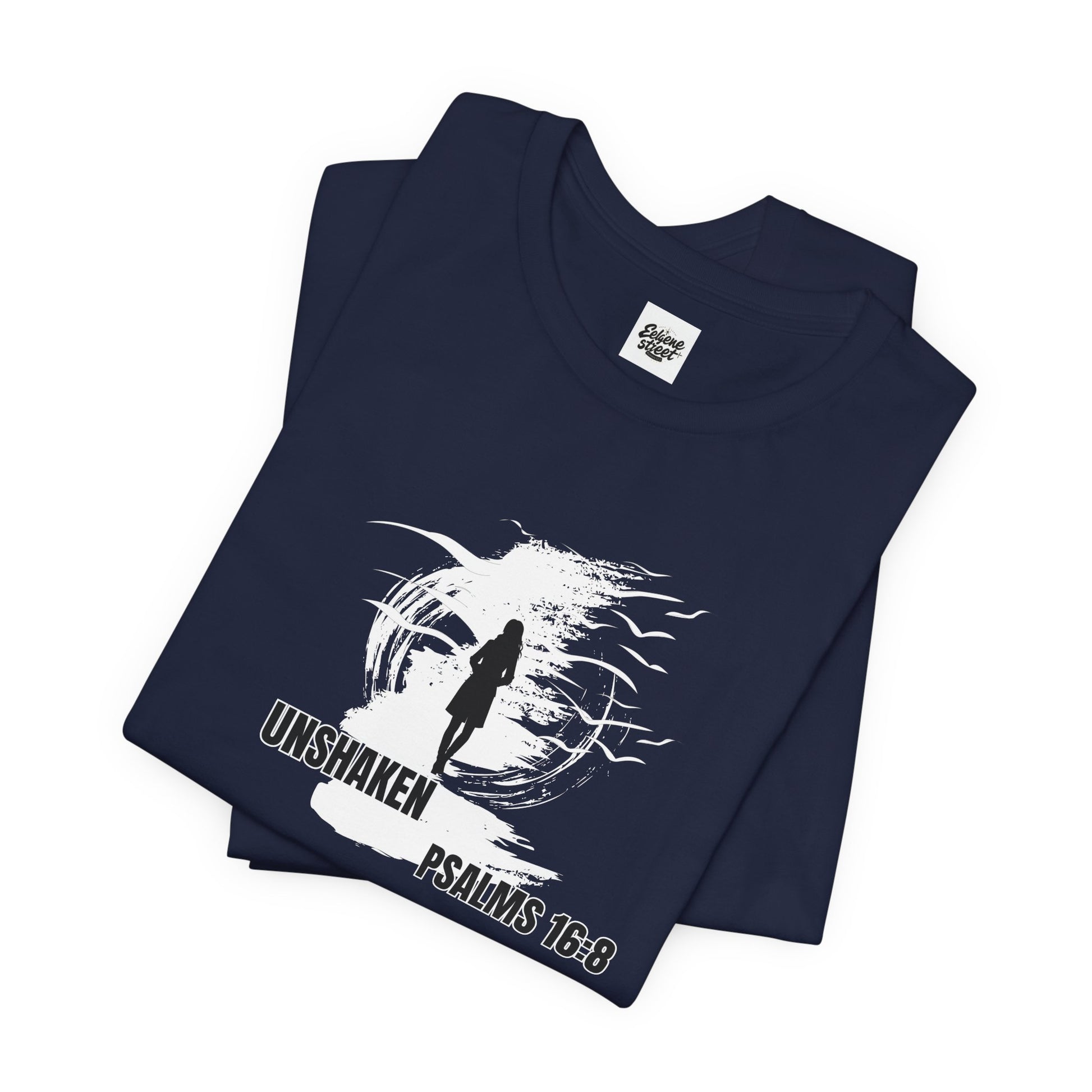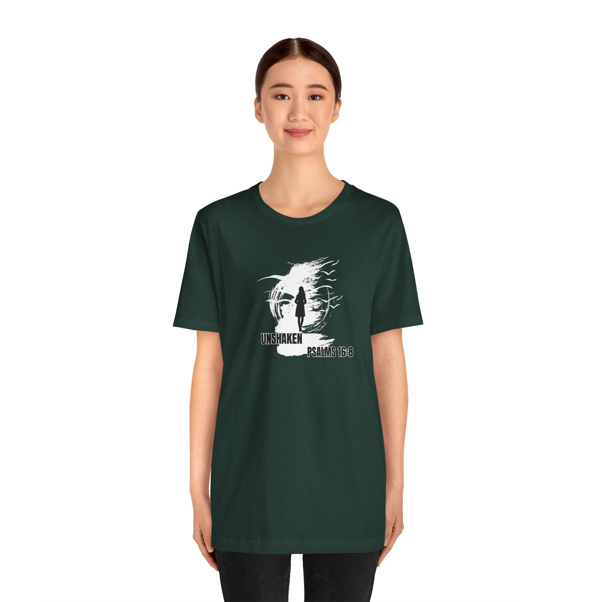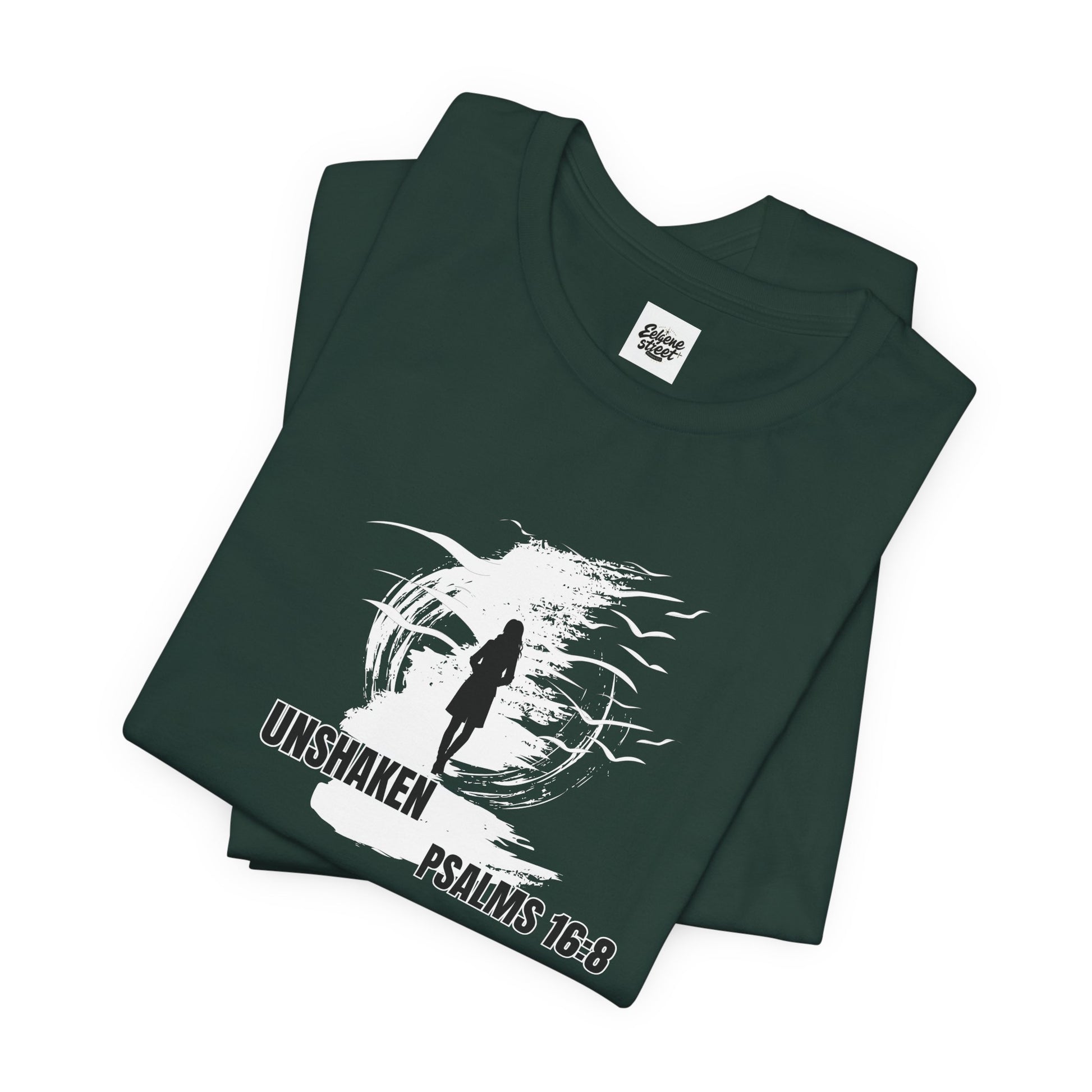 Unisex Tee - Unshaken in God's Presence Inspired by Psalms 16:8 - Women
