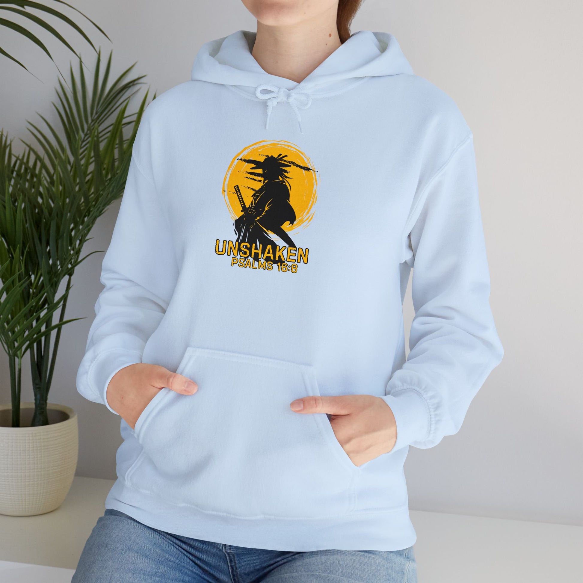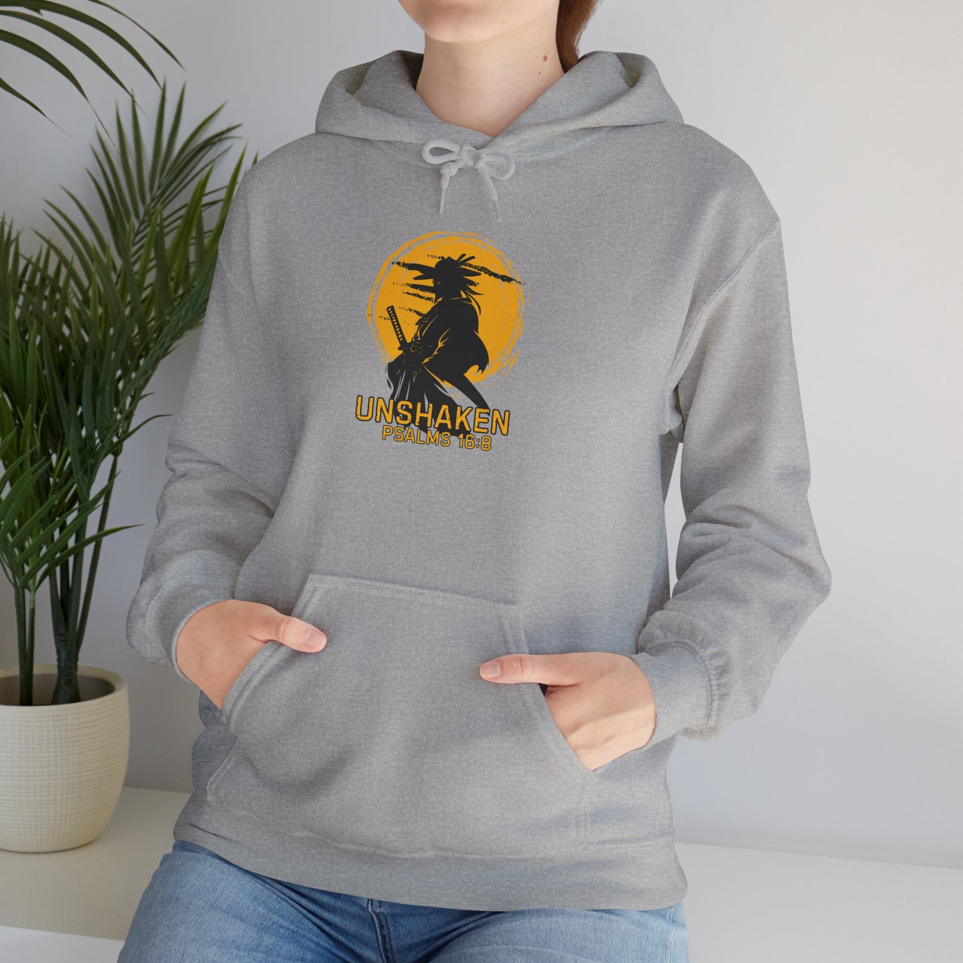 Unshaken Hoodie — Psalm 16:8 Faith Sweatshirt