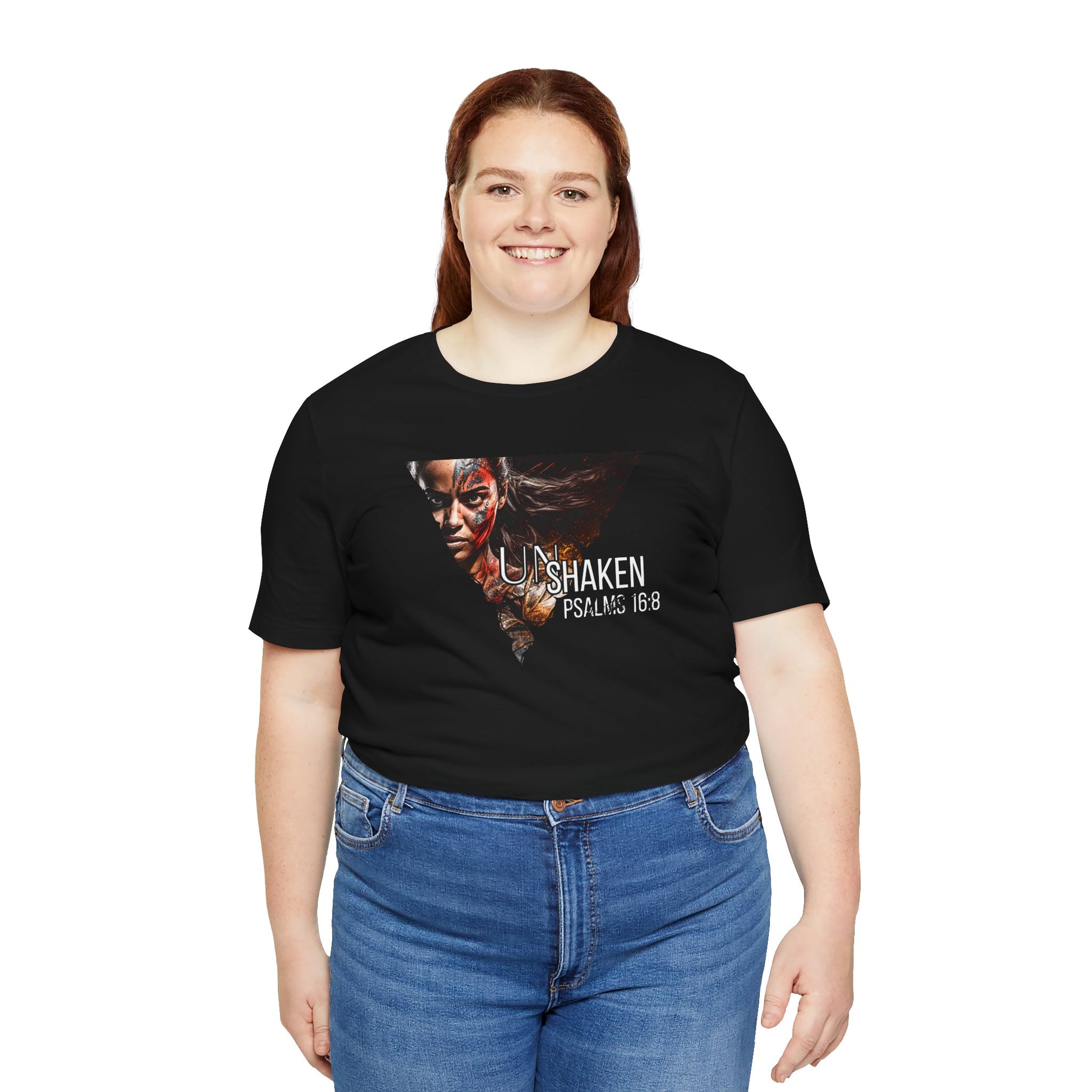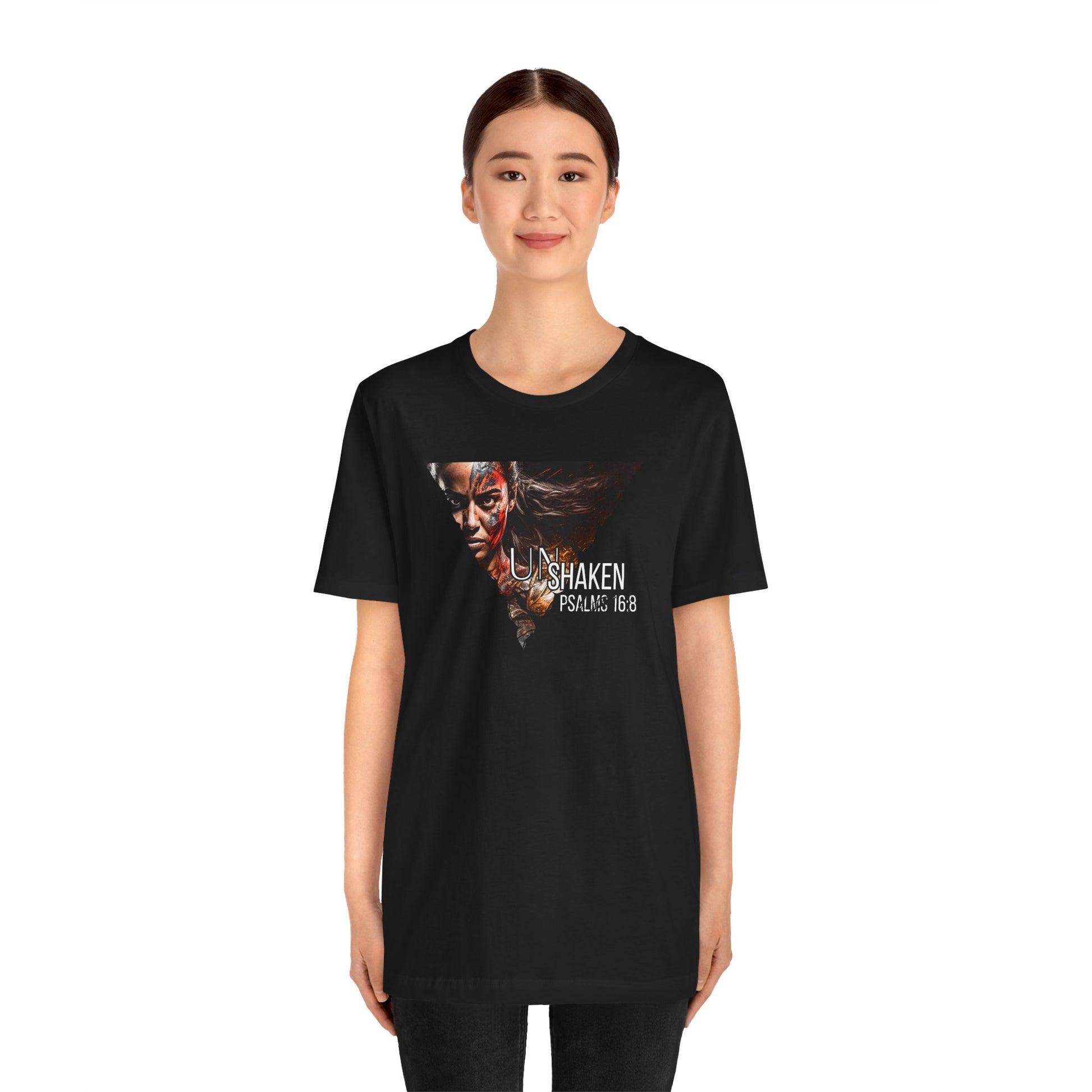 Unshaken Psalm 16:8 Tee — Faith-Inspired Women's Short Sleeve Shirt